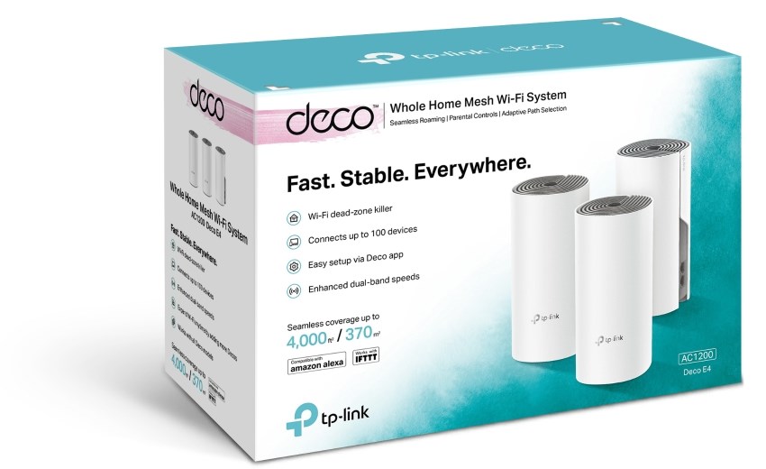 POWER AC adapter input 100-240V~ 50/60Hz 0.3A AC adapter output 12V ⎓ 1A HARDWARE FEATURES Ports 2 10/100Mbps WAN/LAN Ports 1 Power Port Button 1 Reset button on the underside Flash 16 MB SDRAM 128 MB Dimensions 7.5 × 3.6 × 3.6 in. (190.5 × 90.7 × 90.7 mm) Antenna Type 2 internal dual-band antennas per Deco unit WIRELESS FEATURES Wireless Standards IEEE 802.11 ac/n/a 5 GHz IEEE 802.11 b/g/n 2.4 GHz Frequency 2.4 GHz and 5 GHz Signal Rate 867 Mbps at 5 GHz 300 Mbps at 2.4 GHz Transmit Power FCC: <30 dBm CE: <20 dBm (2.4 GHz) <23 dBm (5 GHz) Wireless Security WPA-PSK/WPA2-PSK SOFTWARE FEATURES Quality of Service WMM WAN Type Dynamic IP/Static IP/PPPoE/L2TP/PPTP Management Local Management Remote Managemen DHCP Server Client Firewall Security SPI Firewall Protocols Supports IPv4 and IPv6 Guest Network 2.4 GHz guest network x 1 5 GHz guest network x 1 Working Modes Router Access Point OTHERS Certification CE FCC IC NCC BSMI IDARCM JPA JRF VCCI KC RoHS Package Contents 3 Deco units 3 Power Adapters 1 RJ45 Ethernet Cable Smartphone/Tablet Requirements iOS 9.0 or later Android 4.4 or later Environment Operating Temperature: 0℃~40℃ (32℉~104℉) Storage Temperature: -40℃~70℃ (-40℉~158℉) Operating Humidity: 10%~90% non-condensing Storage Humidity: 5%~90% non-condensing