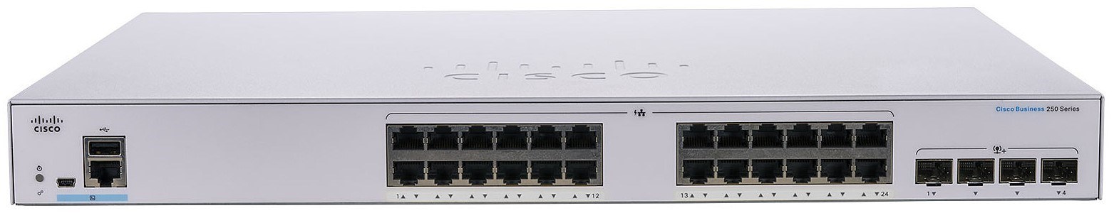 Feature Description Capacity in millions of packets per second (mpps) (64-byte packets) 41.66 Switching capacity in gigabits per second (Gbps) 56.0 Total system ports 28 Gigabit Ethernet RJ-45 ports 24 Gigabit Ethernet Packet buffer 1.5 MB Unit dimensions (W x D x H) 445 x 240 x 44 mm (17.5 x 9.45 x 1.73 in) Layer 2 switching VLAN Support for up to 255 active VLANs simultaneously Port-based and 802.1Q tag-based VLANs Management VLAN Guest VLAN Voice VLAN Voice traffic is automatically assigned to a voice-specific VLAN and treated with appropriate levels of QoS. Voice Services Discovery Protocol (VSDP) delivers networkwide zero-touch deployment of voice endpoints and call control devices Layer 3 routing IPv4 routing Wire-speed routing of IPv4 packets Up to 32 static routes and up to 16 IP interfaces IPv6 routing Wire-speed routing of IPv6 packets Layer 3 interface Configuration of Layer 3 interface on physical port LAG VLAN interface or loopback interface Security Secure Sockets Layer (SSL) SSL encrypts all HTTPS traffic allowing secure access to the browser-based management GUI in the switch Secure Shell (SSH) Protocol SSH is a secure replacement for Telnet traffic. Secure Copy (SCP) also uses SSH. SSH v1 and v2 are supported. IEEE 802.1X (authenticator role) Remote Authentication Dial-In User Service (RADIUS) authentication guest VLAN single/multiple host mode and single/multiple sessions STP loopback guard Provides additional protection against Layer 2 forwarding loops (STP loops) Secure Core Technology (SCT) Ensures that the switch will receive and process management and protocol traffic no matter how much traffic is received Secure Sensitive Data (SSD) A mechanism to manage sensitive data (such as passwords keys and so on) securely on the switch populating this data to other devices and secure autoconfig. Access to view the sensitive data as plain text or encrypted is provided according to the user-configured access level and the access method of the user Trustworthy systems Trustworthy systems provide a highly secure foundation for Cisco products Run-time defenses (Executable Space Protection [X-Space] Address Space Layout Randomization [ASLR] Built-In Object Size Checking [BOSC]) Port security Ability to lock source MAC addresses to ports and limit the number of learned MAC addresses RADIUS Supports RADIUS authentication for management access. Switch functions as a client. Storm control Broadcast multicast and unknown unicast DoS prevention Denial-of-Service (DoS) attack prevention Multiple user privilege levels in CLI Level 1 7 and 15 privilege levels Access Control Lists (ACLs) Support for up to 512 rules Drop or rate limit based on source and destination MAC VLAN ID or IPv4 or IPv6 address IPv6 flow label protocol port Differentiated Services Code Point (DSCP)/IP precedence TCP/UDP source and destination ports 802.1p priority Ethernet type Internet Control Message Protocol (ICMP) packets IGMP packets TCP flag; ACL can be applied on both ingress and egress sides Time-based ACLs supported Flash 256 MB CPU 800 MHz ARM DRAM 512 MB Environmental Power 100 to 240V 50 to 60 Hz internal universal: CBS250-16T-2G CBS250-16P-2G CBS250-24T-4G CBS250-24PP-4G CBS250-24P-4G CBS250-24FP-4G CBS250-48T-4G CBS250-48PP-4G CBS250-48P-4G CBS250-24T-4X CBS250-24P-4X CBS250-24FP-4X CBS250-48T-4X CBS250-48P-4X 100 to 240V 50 to 60 Hz external: CBS250-8T-D CBS250-8PP-D CBS250-8T-E-2G CBS250-8PP-E-2G CBS250-8P-E-2G CBS250-8FP-E-2G Certification UL (UL 62368) CSA (CSA 22.2) CE mark FCC Part 15 (CFR 47) Class A Operating temperature 32° to 122°F (0° to 50°C) for CBS250-8T-D and CBS250-8PP-D 23° to 122°F (-5° to 50°C) for other models Storage temperature -13° to 158°F (-25° to 70°C) Operating humidity 10% to 90% relative noncondensing Storage humidity 10% to 90% relative noncondensing Warranty Limited lifetime
