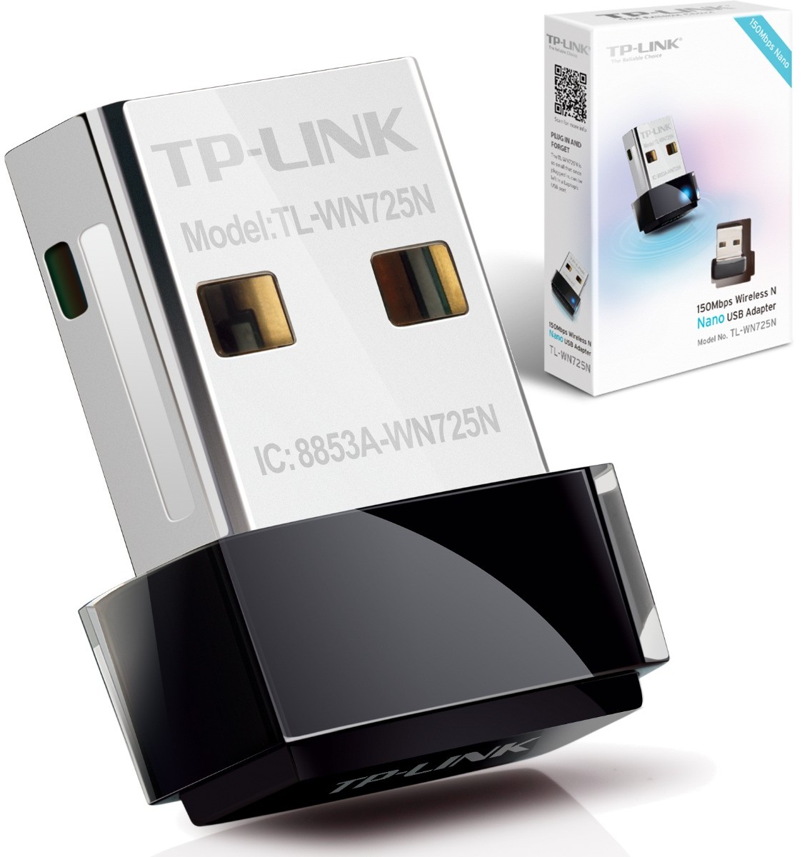 150Mbps Wireless N Nano USB Adapter TL-WN725N Highlights: - Sleek miniature design so small that once plugged in can be left in a Laptop’s USB port - Speedy wireless transmission at up to 150Mbps ideal for video streaming or internet calls - Advanced Security: Supports 64/128 WEP WPA PA2/WPA-PSK/WPA2-PSK(TKIP/AES) - Connect in no time with easy setup utility in 14 languages What This Product Does TP-LINK's 150Mbps wireless N Nano USB adapter TL-WN725N allows users to connect a desktop or notebook computer to a wireless network at 150Mbps. This miniature adapter is designed to be as convenient as possible and once connected to a computer’s USB port can be left there whether traveling or at home. It also features advanced wireless encryption and easy installation. Miniature Design – Plug in and forget With its miniature size and sleek design users can connect the nano adapter to any USB port and leave it there. There’s no need to worry about blocking adjacent USB interfaces or that the adapter may fall out when moving a connected laptop from A to B with the tiny device flush against the USB port. 150Mbps Wireless N Speed - Stable Wireless Signals The TL-WN725N complies with wireless 802.11 b/g/n standards with transmission data rates of up to 150Mbps enabling fast wireless connections for lag-free online gaming and video streaming. WPA / WPA2 Encryptions - Advanced Security When speaking about wireless security WEP encryptions are no longer the strongest and safest protections against intrusions. The TL-WN725N provides WPA/WPA2 encryptions created by the WI-FI Alliance™ promoting interoperability and security for WLAN which effectively and efficiently protects users’ wireless networks. Bundled CD for Easy Operation The TL-WN725N comes with a 14-language utility located on its bundled CD that helps users complete the software installation and wireless network settings including security configurations and wireless connections quickly and easily even for novice users new to wireless networking. - Miniature design: 0.73x0.59x0.28in.(18.6x15x7.1mm) - Wireless N speed up to 150Mbps - 14-language utility and auto run CD - Supports WMM (Wi-Fi Multimedia) Standard for better streaming of real-time data such as Video Music Video Chat - Supports software-based WPS - Supports Soft AP function for Wireless Internet Sharing - Advanced Security: Supports 64/128 WEP WPA/WPA2 WPA-PSK/WPA2-PSK (TKIP/AES) supports IEEE 802.1X - Supports Windows XP 32/64bit Vista 32/64bit Windows 7 32/64bit Windows 8 32/64bit - Supports ad-hoc and infrastructure modes - Seamlessly compatible with 802.11b/g/n products